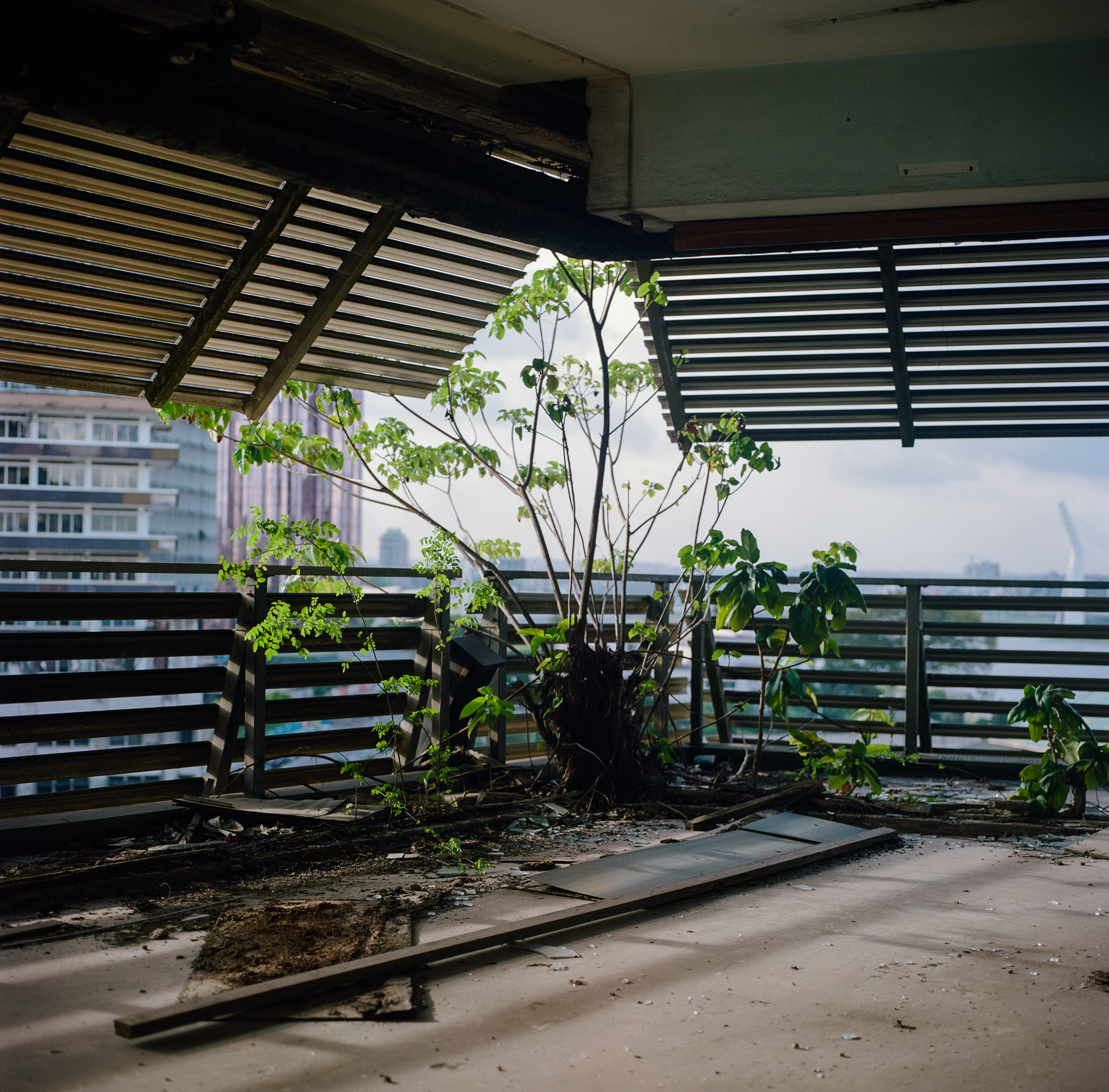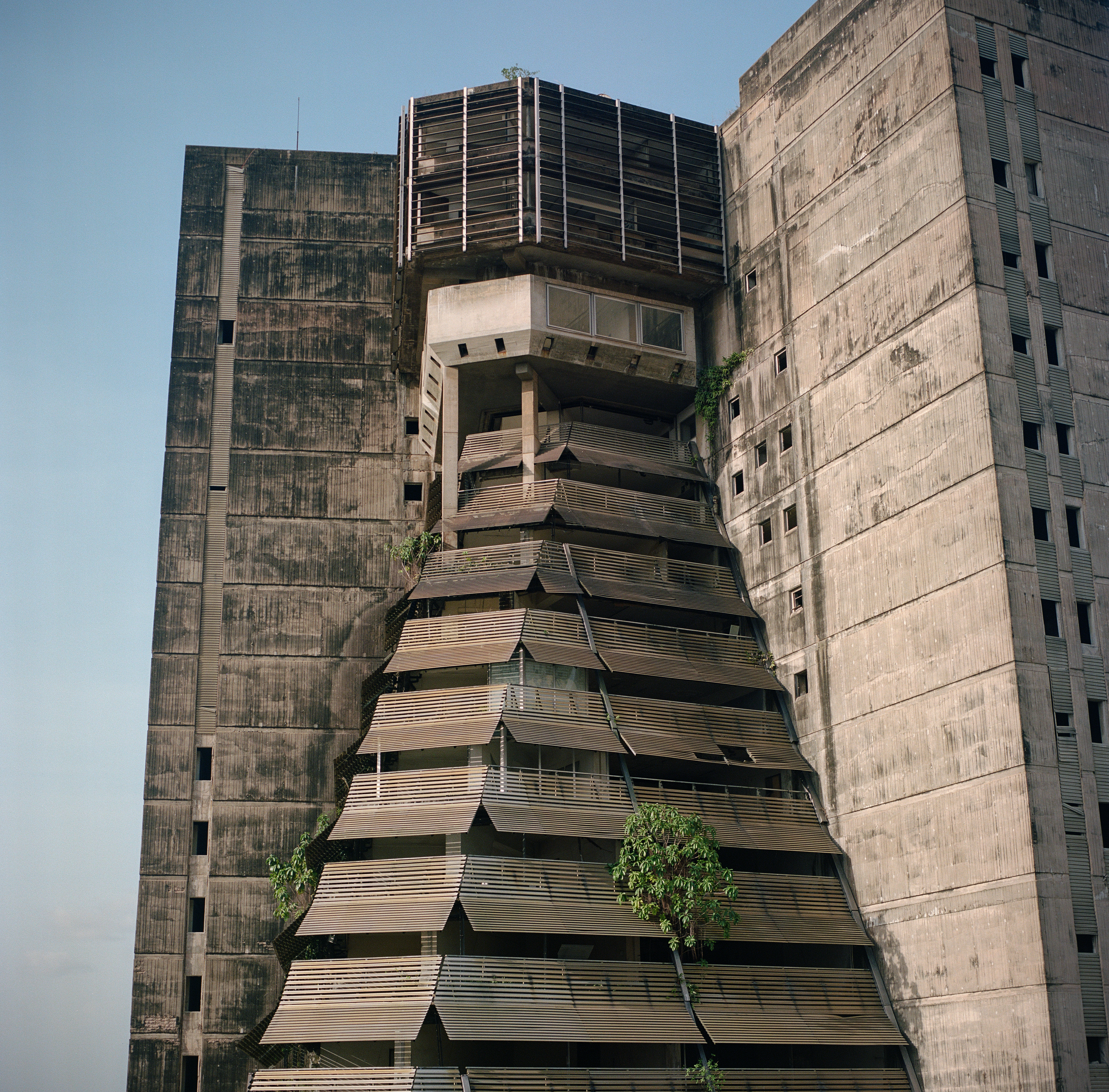 Built in the early 1970s by Italian architect Rinaldo Olivieri, La Pyramide was conceived as a vertical city, a large commercial hall in the style of an African market, that declined through the 1990s and closed in the early 2000s. Now owned by the Ivorian state, it stands as a powerful emblem of African brutalism and of the ambitions that shaped the Plateau business district. This visual work is built around the ruins of La Pyramide and portraits of Ivorian personalities sharing their memories of the Plateau district, and their visions of the future of Abidjan.